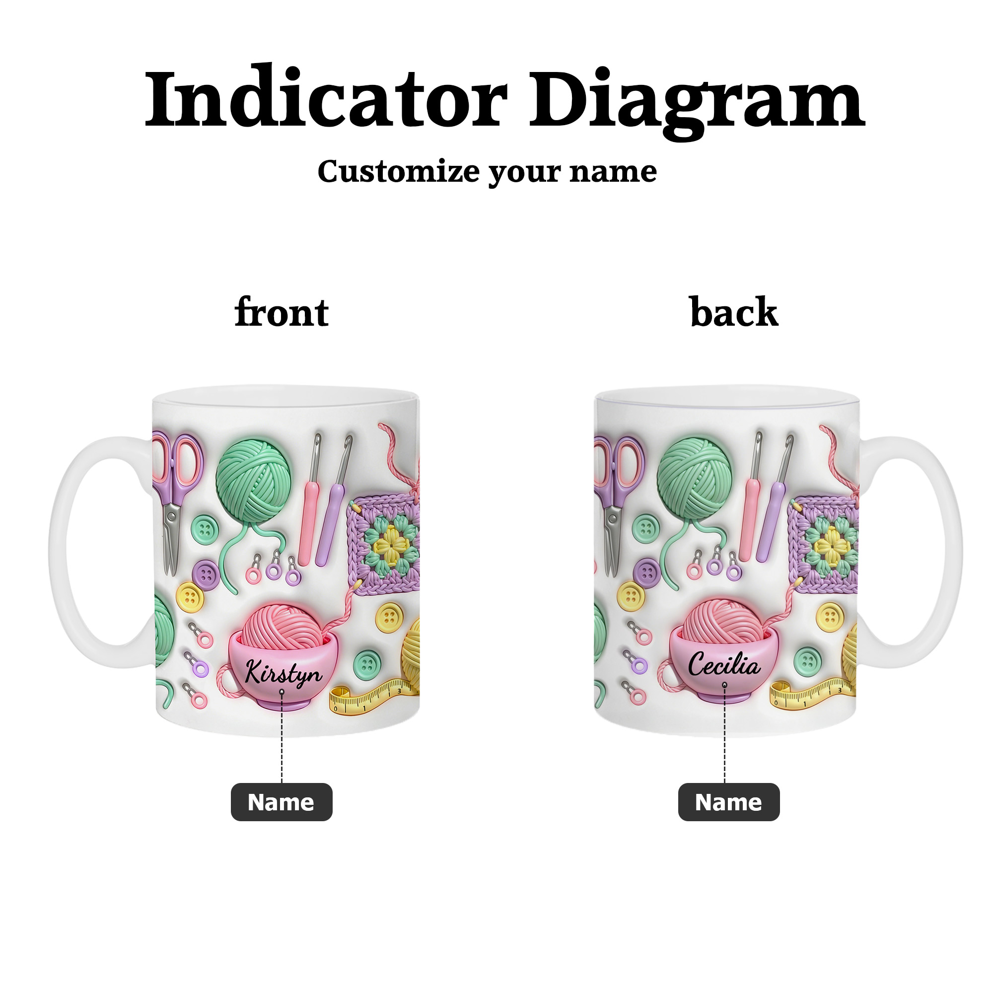 Personalized Name - Add a custom name to create a one-of-a-kind mug. The personalized touch highlights the crochet theme and turns an everyday coffee mug into a meaningful keepsake for knitting lovers, moms, or grandmas who enjoy their favorite craft.